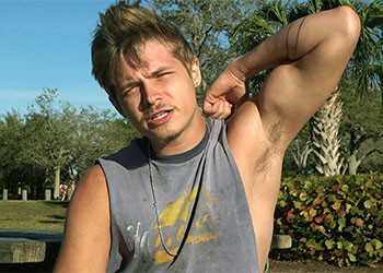 At Gemini, we think Link has some of the sexiest armpits we've ever seen and never miss an opportunity to photograph or shoot them much to his amusement. He has, in fact, sent a text message at 3 am consisting of a close up of his blonde furry pit! This video starts with him shaving his pits (ouch; he nicks himself!) and then documents the "reforestation". While it was a fun video to shoot, everyone was glad when he was back to his regular blonde thatch!